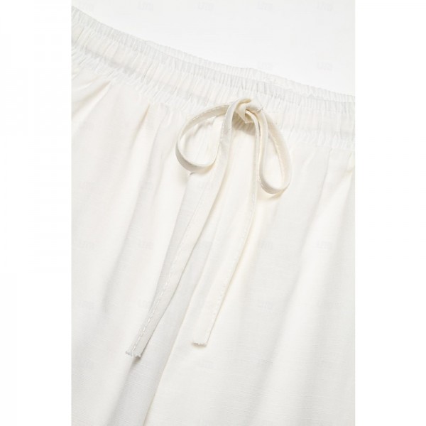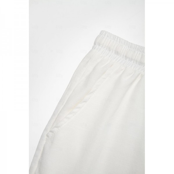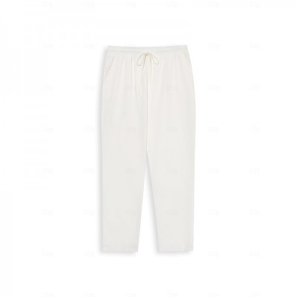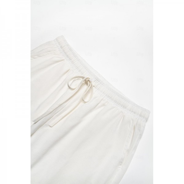 Men's Linen Pants Trousers Summer Pants Beach Pants Drawstring Elastic Waist Straight Leg Plain Comfort Breathable Casual Daily Holiday Linen / Cotton Blend Fashion Classic Style Black White