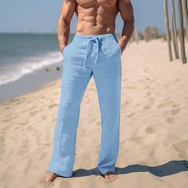 Gender: Men's, Pants Type: Summer Pants, Linen Pants, Beach Pants, Trousers, Style: Classic Style, Fashion, Occasion: Holiday, Daily, Casual, Fabric: Linen Cotton Blend, Design: Straight Leg, Elastic Waist, Drawstring, Waistline: Mid Waist, Pattern: Plain, Season: Spring & Summer, Fly Type: Drawstring, Elasticity, Fit Type: Regular Fit, Function: Breathable, Comfort,Photos