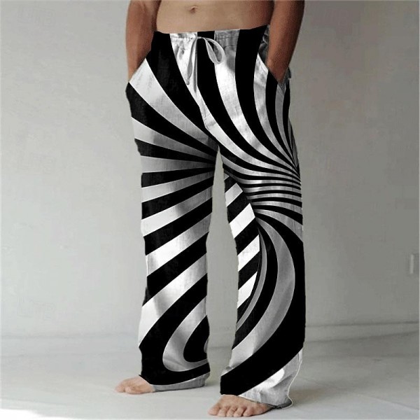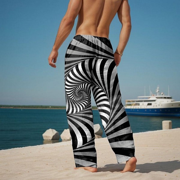Men's Pants Trousers Graphic Outdoor Holiday Hawaiian Black Inelastic