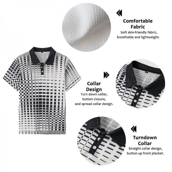 Gender: Men's, Style: Casual, Designer, Fashion, Breathable, Occasion: Outdoor, Going out, Casual, Daily, Street, Tops Type: Lapel Polo, Polo Shirt, Golf Shirt, Waffle Polo Shirt, Button Up Polos, Neckline: Turndown, Fabric: Waffle Fabric, Design: Print, Sleeve Length: Short Sleeve, Look After Me: Washable, Hand wash, Machine wash, Pattern: Plaid / Check, Graphic Prints, Geometry, Season: Summer, Spring, Fit Type: Regular Fit,Photos