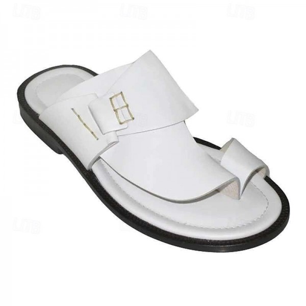 Men's Leather Sandals Flat Sandals Gladiator Roman Shoes Walking Casual Beach Outdoor Vacation Synthetic leather Slippers Breathable Comfortable Buckle Shoes Black White Brown Summer